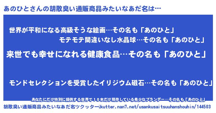 | 意味不明あだ名 | 『永久保存あのひと』『ペロリンあのひと』 |