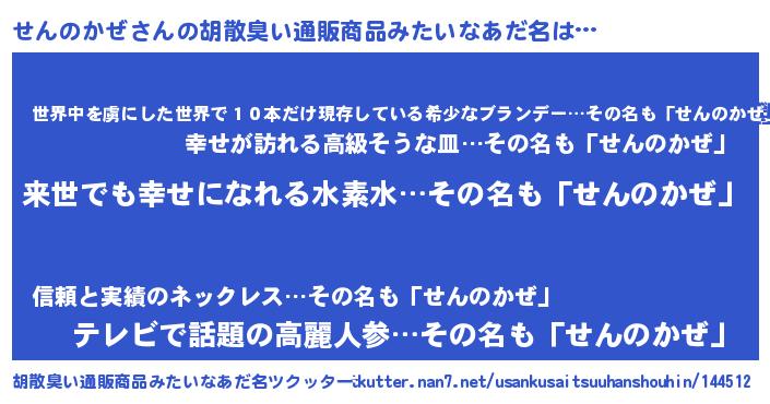 | 意味不明あだ名 | 『永久保存せんのかぜ』『自称せんのかぜ』 |