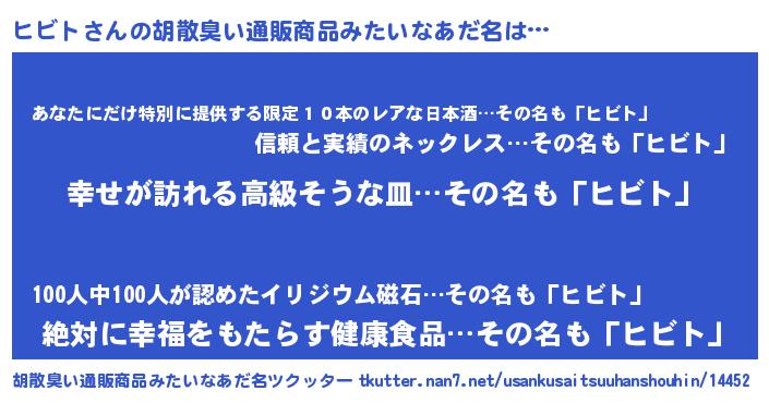 | 男性向けラノベタイトル風あだ名 | 『やはりヒビトの青春ラブコメはまちがっている 』 |