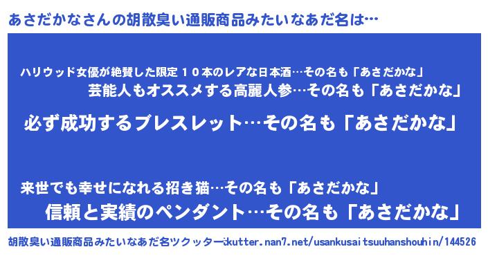 ヘコむあだ名 | 『あさにー』『あさお』『酢こんぶ』 |