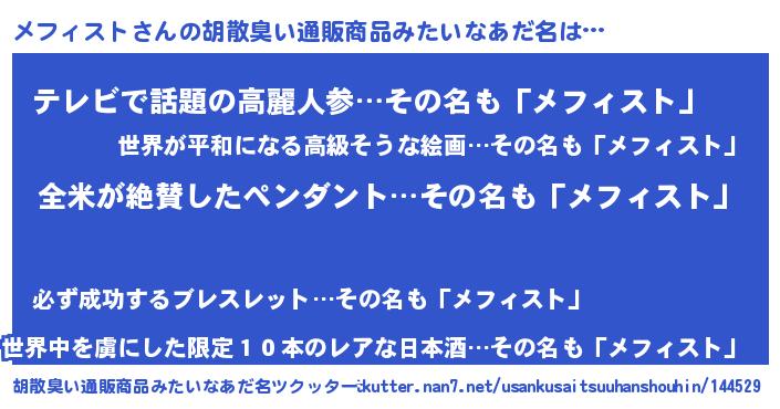 | 意味不明あだ名 | 『とにかく怪しいメフィスト』 |