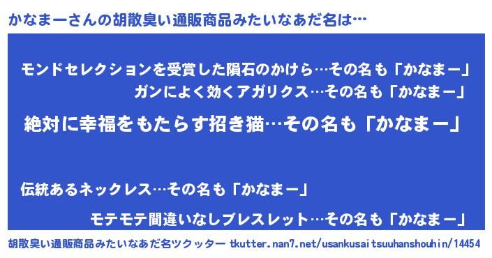 | 意味不明あだ名 | 『永久保存かなまー』『ペロリンかなまー』 |