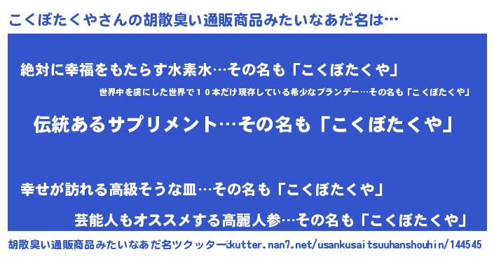 | ヘコむあだ名 | 『こくお』『こくぼたくや(笑)』 |