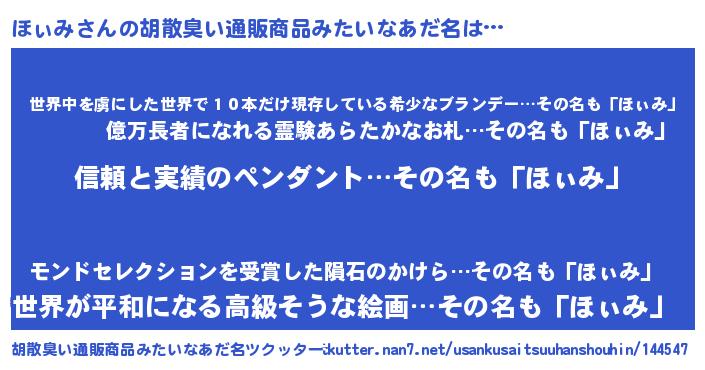 | 意味不明あだ名 | 『とにかく怪しいほぃみ』 |