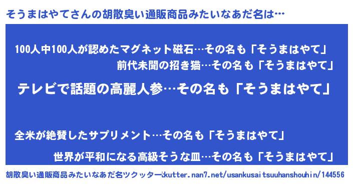 | 意味不明あだ名 | 『自称そうまはやて』 |