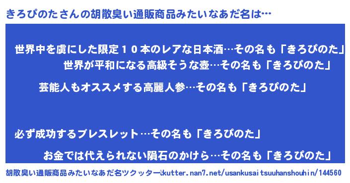 | 意味不明あだ名 | 『自称きろぴのた』『ペロリンきろぴのた』 |