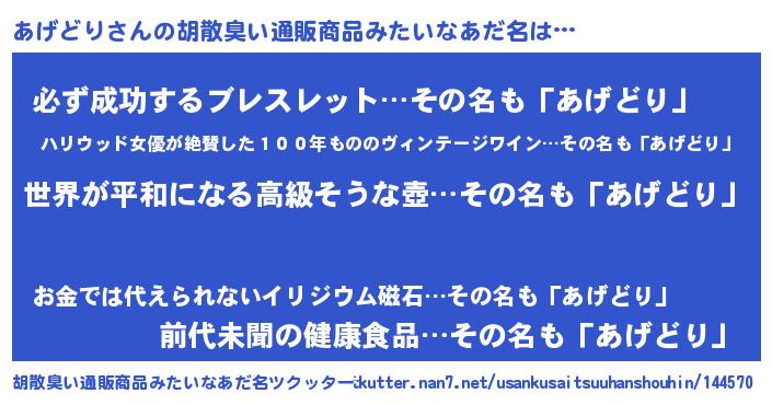 | 意味不明あだ名 | 『あげどりフォーエバー』 |