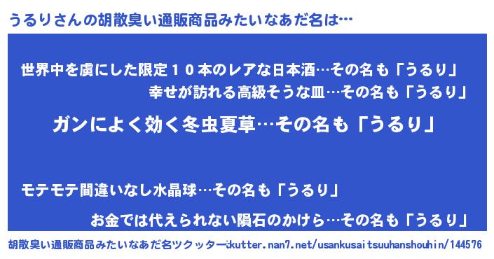 | 女子向けラノベタイトル風あだ名 | 『うるりなんてお断りですっ。』 |