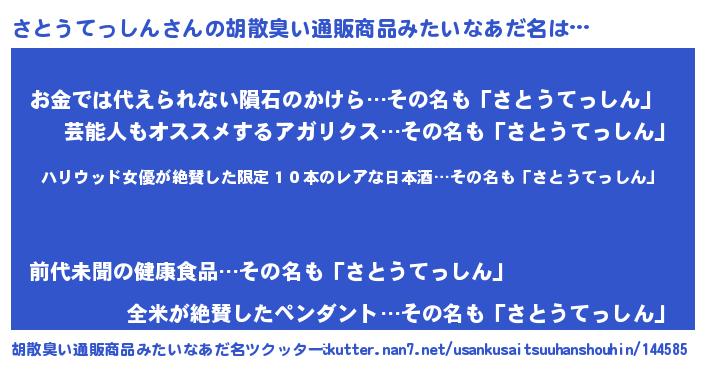 | ヘコむあだ名 | 『さとっ子』『さとうてっしん(苦笑)』 |