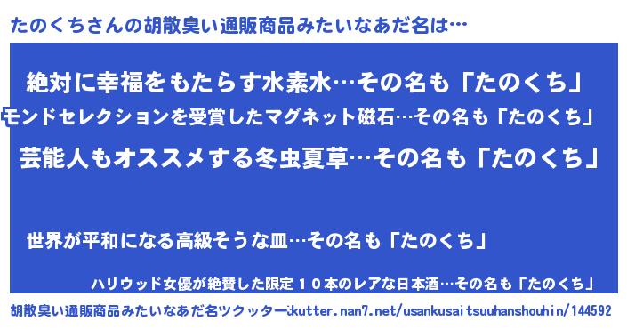 | 意味不明あだ名 | 『自称たのくち』『永久保存たのくち』 |