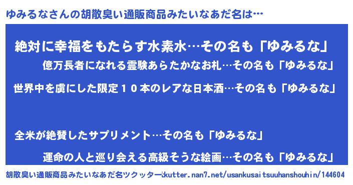| 男性向けラノベタイトル風あだ名 | 『この素晴らしい世界にゆみるなを!』 |