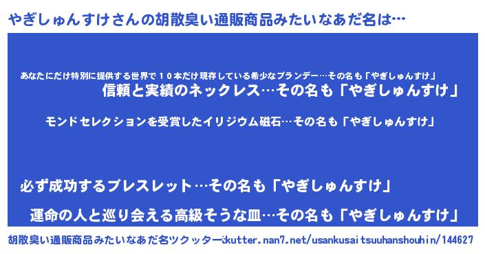 | 伝説のあだ名 | 『救世主となる占い師やぎしゅんすけ』 |