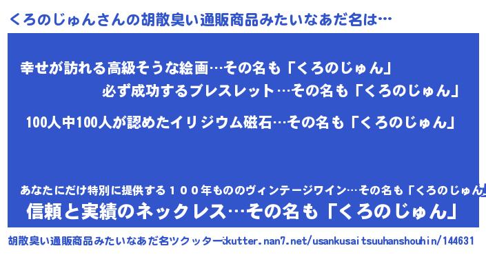 | 男性向けラノベタイトル風あだ名 | 『おまえをオタクにしてやるから、俺をくろのじゅんにしてくれ! 』 |