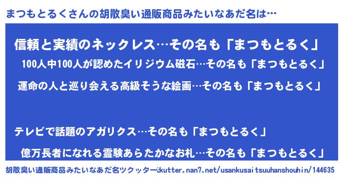 | 意味不明あだ名 | 『まつもとるくフォーエバー』 |