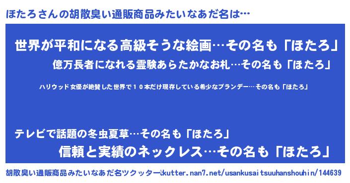 | ヒーロー風カッコイイあだ名 | 『仮面ホタダー』『ウルトラほたろマン』 |
