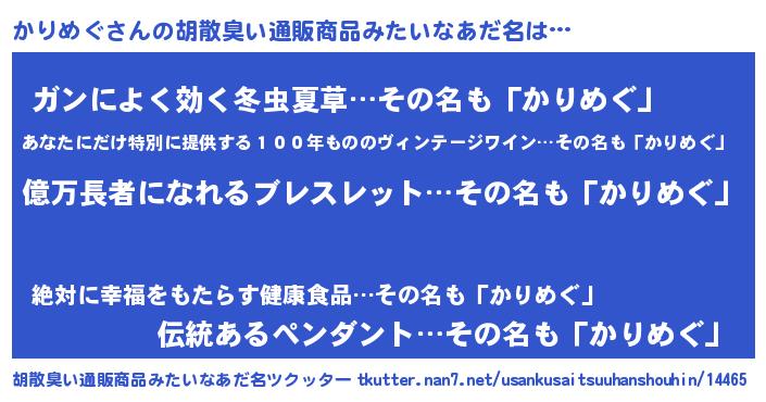 | 意味不明あだ名 | 『ペロリンかりめぐ』『自称かりめぐ』 |