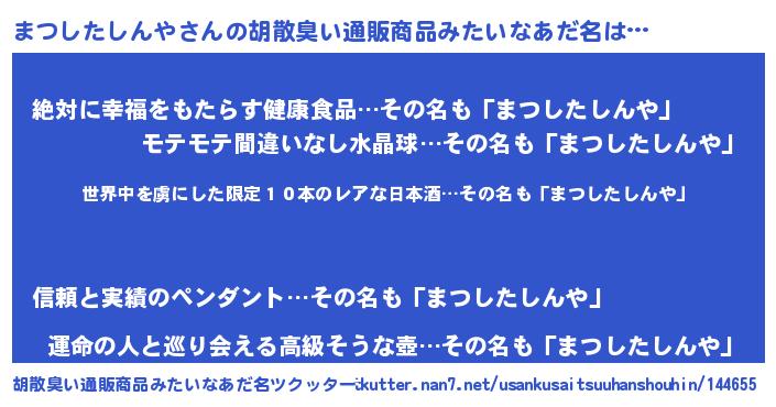 | 意味不明あだ名 | 『住所不定無職まつしたしんや(43歳)』 |