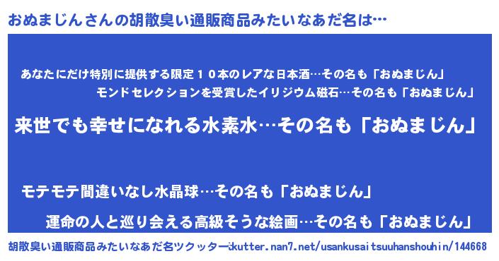 | 意味不明あだ名 | 『永久保存おぬまじん』 |