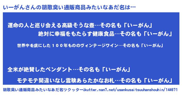 | 意味不明あだ名 | 『住所不定無職いーがん(3歳)』 |