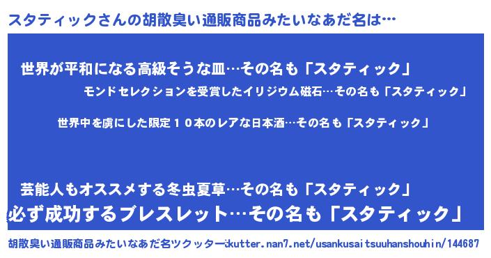 | 男性向けラノベタイトル風あだ名 | 『転生したらスタティックだった件』 |