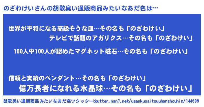 | ヘコむあだ名 | 『牛乳』『のざふぇ~』『のざっぺ』 |