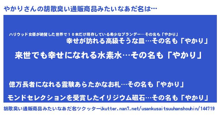| ヘコむあだ名 | 『やかり(遠い目)』『なまこ酢』 |