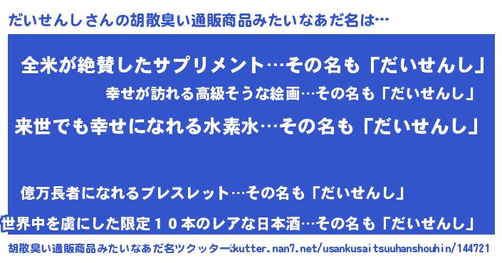 | ヘコむあだ名 | 『だいせんし(苦笑)』『だいを』 |