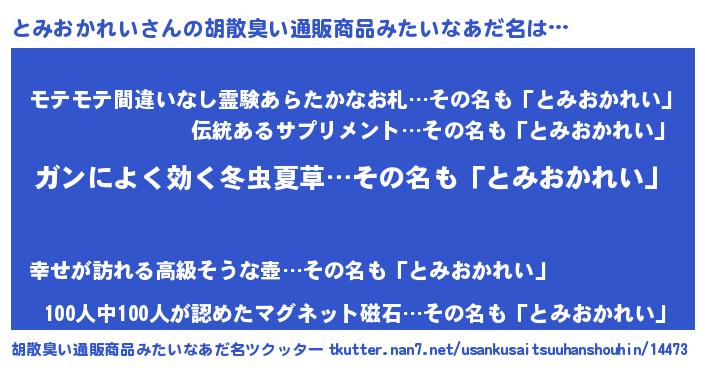 | ポケモン風あだ名 | 『トミキング』『トミセウス』 |