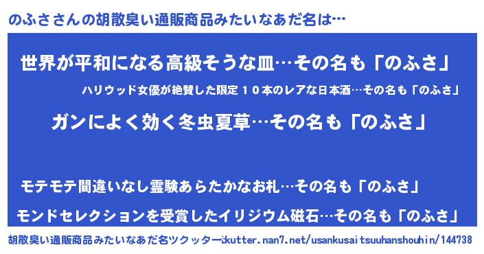 | 女子向けラノベタイトル風あだ名 | 『のふさなんてお断りですっ。』 |