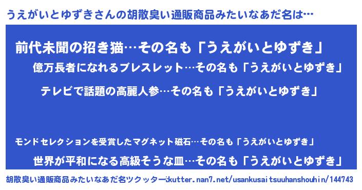 | ヘコむあだ名 | 『うえがいとゆずき(笑)』『酢こんぶ』 |
