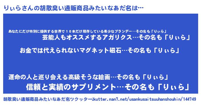 | ヘコむあだ名 | 『りぃを』『レバニラ』『りぃにー』 |