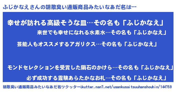 | 意味不明あだ名 | 『自称ふじかなえ』『ペロリンふじかなえ』 |