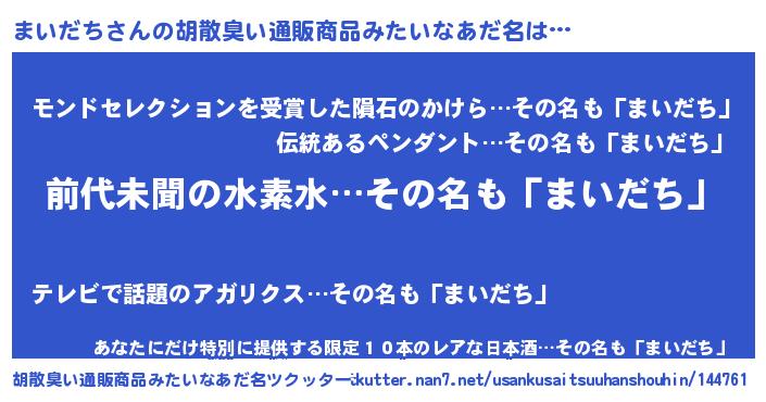 | ヘコむあだ名 | 『まいだち(苦笑)』『まいぷりん』 |