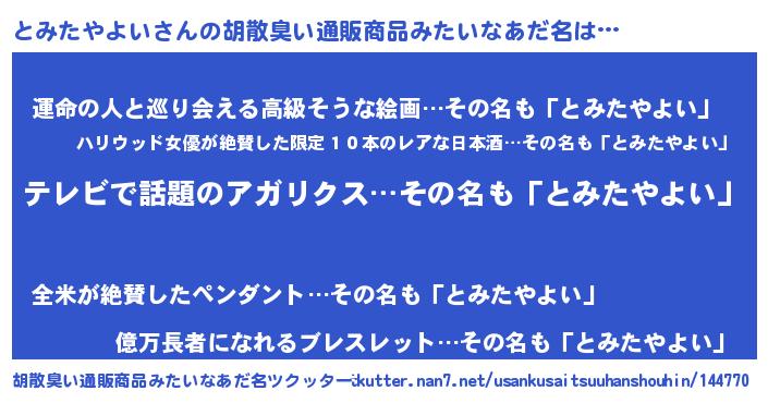 | 意味不明あだ名 | 『自称とみたやよい』 |