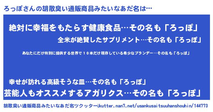 | 意味不明あだ名 | 『住所不定無職ろっぽ(74歳)』『自称ろっぽ』 |