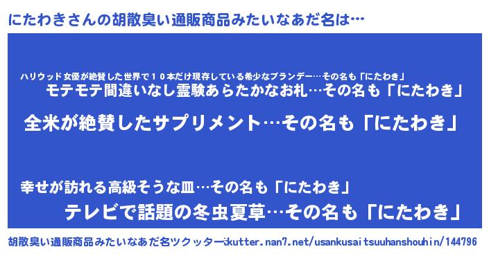 | 恥ずかしいあだ名 | 『ニタリンリン』『ニタワキデラックス』 |
