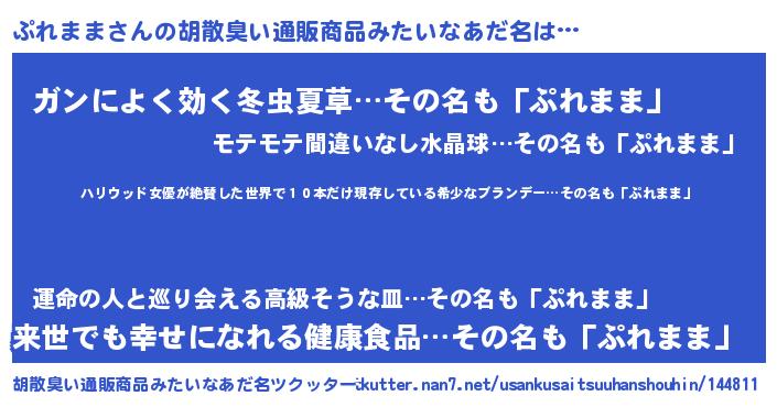 | 意味不明あだ名 | 『住所不定無職ぷれまま(89歳)』 |