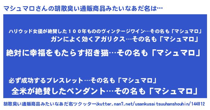 | ヘコむあだ名 | 『マシュマロ(笑)』『マシっ子』 |