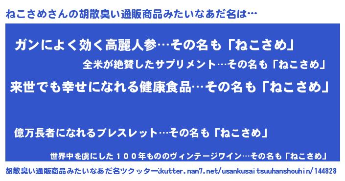 | 男性向けラノベタイトル風あだ名 | 『転生したらねこさめだった件』 |
