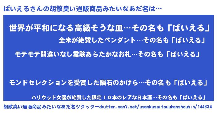 | 男性向けラノベタイトル風あだ名 | 『転生したらばいえるだった件』 |