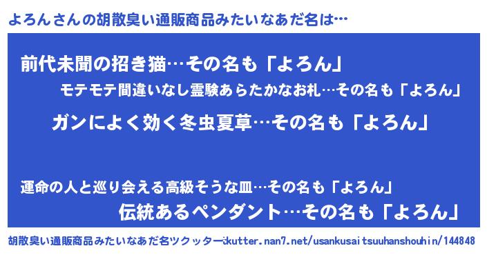 | 意味不明あだ名 | 『自称よろん』『永久保存よろん』 |