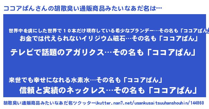 | 意味不明あだ名 | 『自称ココアぱん』 |
