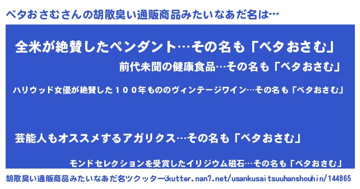 | 意味不明あだ名 | 『住所不定無職ベタおさむ(8歳)』 |