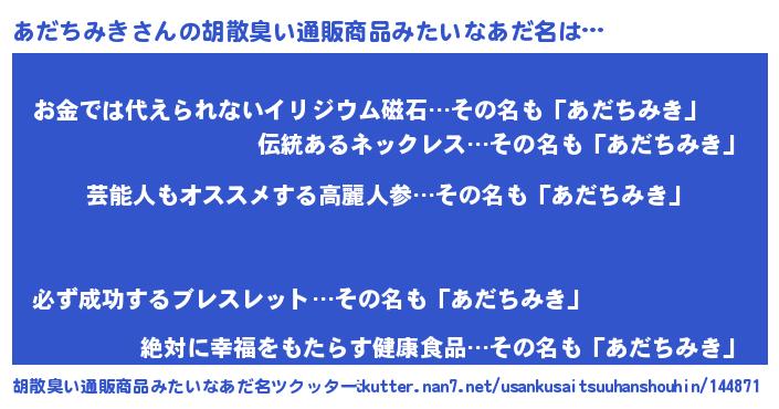 | 意味不明あだ名 | 『自称あだちみき』『永久保存あだちみき』 |