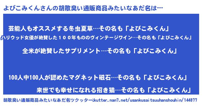 | ヘコむあだ名 | 『よびを』『よびこみくん(遠い目)』 |