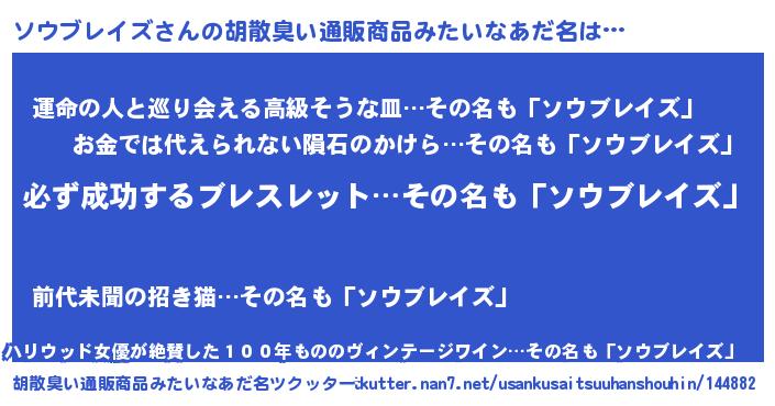 | 男性向けラノベタイトル風あだ名 | 『ソウブレイズの憂鬱』 |