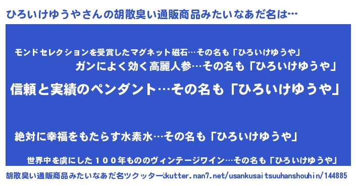 | 意味不明あだ名 | 『とにかく怪しいひろいけゆうや』 |