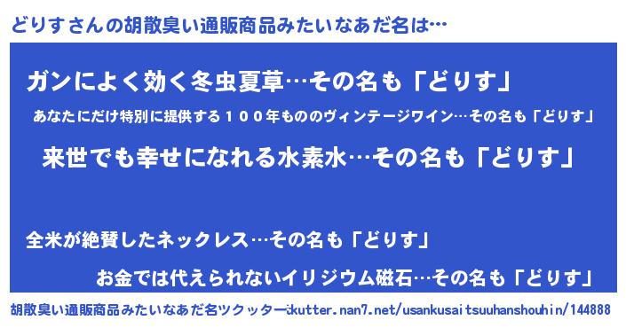 | 意味不明あだ名 | 『永久保存どりす』『自称どりす』 |