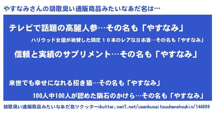 | 意味不明あだ名 | 『とにかく怪しいやすなみ』 |