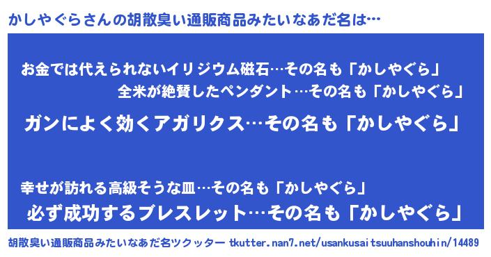 | 男性向けラノベタイトル風あだ名 | 『魔法科高校のかしやぐら』 |